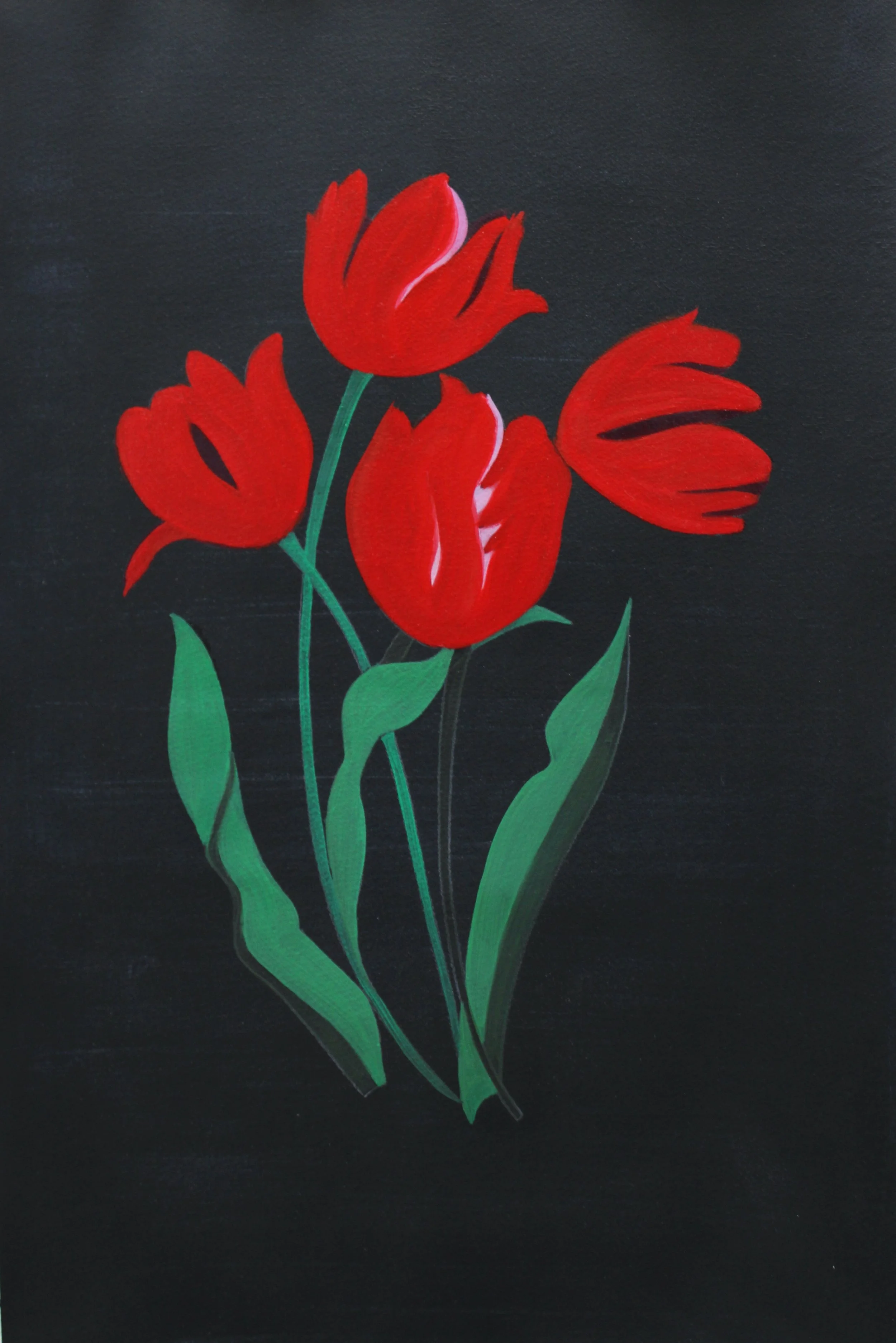 Tulips, oil on watercolour paper, 56 cm x 38 cm, 2022